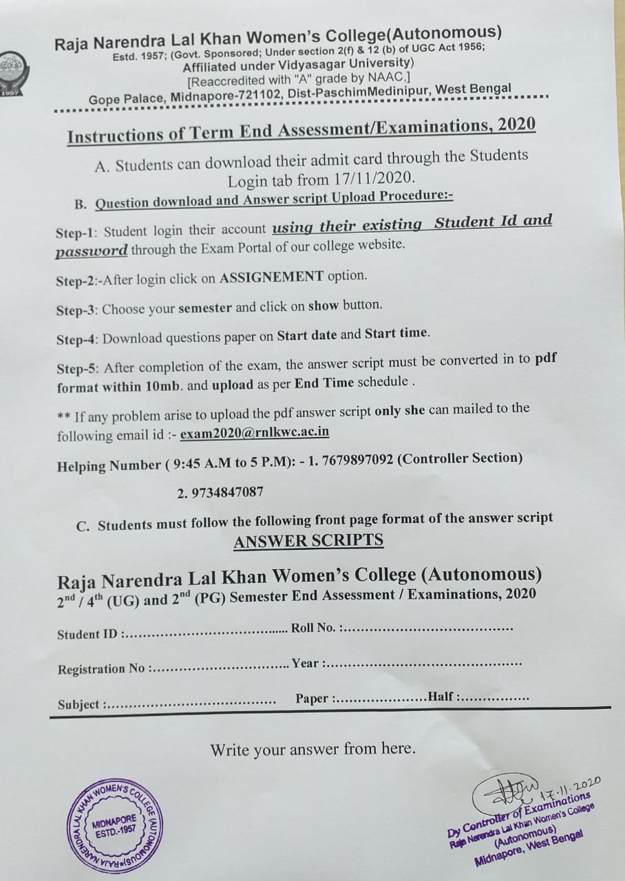 News : Instructions of Term End Assessment/Examinations, 2020.