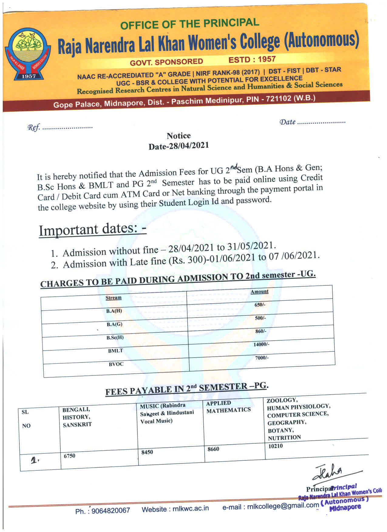 News : Admission notice for UG & PG 2nd Semester, Session 2020-2021.