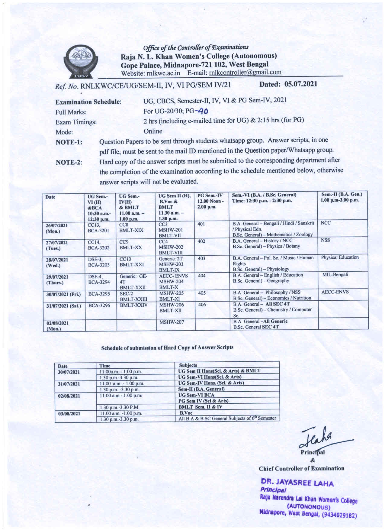 News : Examination Schedule for UG (Semester –II & IV & VI) & PG(Semester-IV)