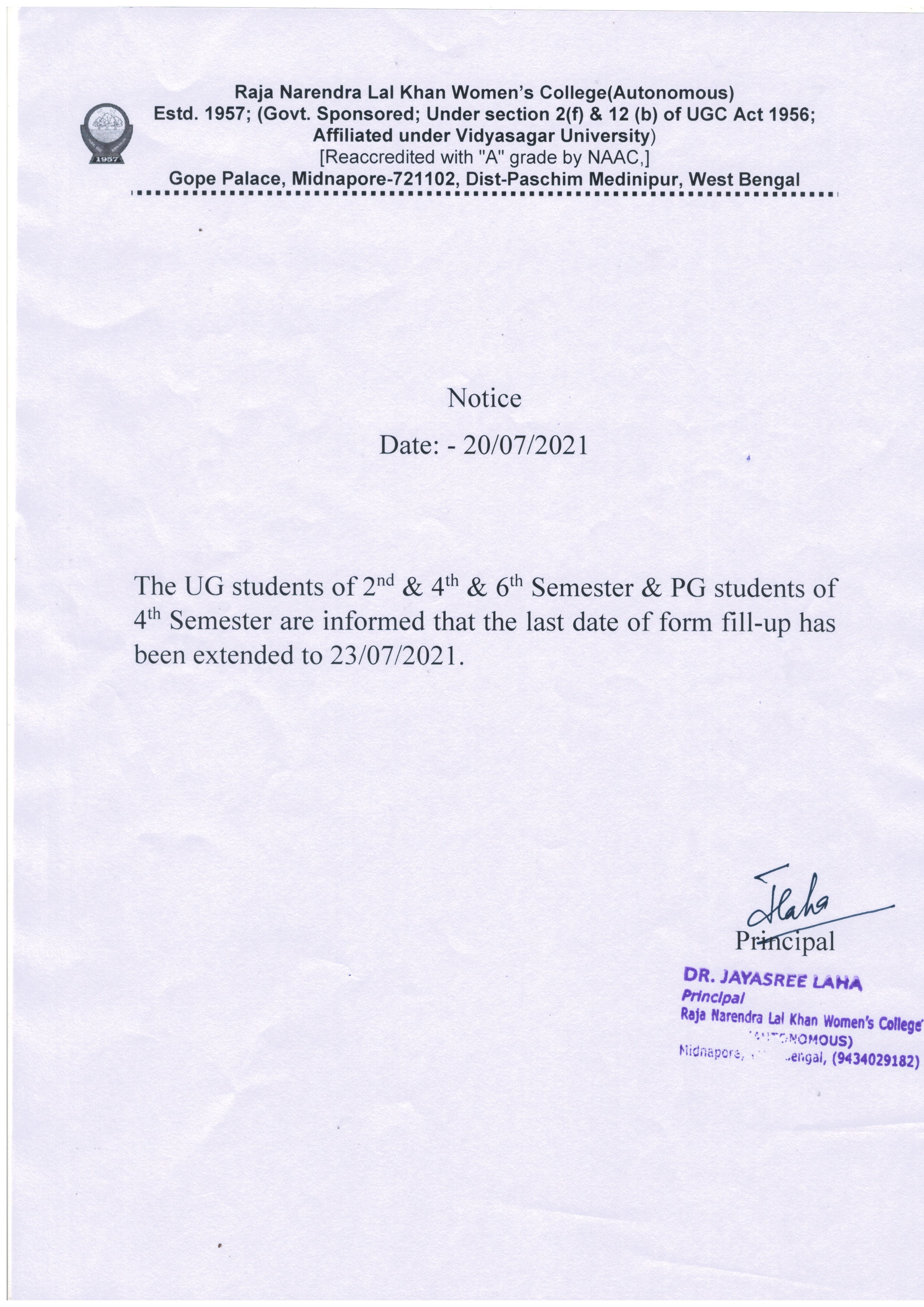 News : The UG students of 2nd & 4th & 6th Semester & PG students of 4th Semester are informed that the last date of form fill-up has been extended to 23/07/2021.