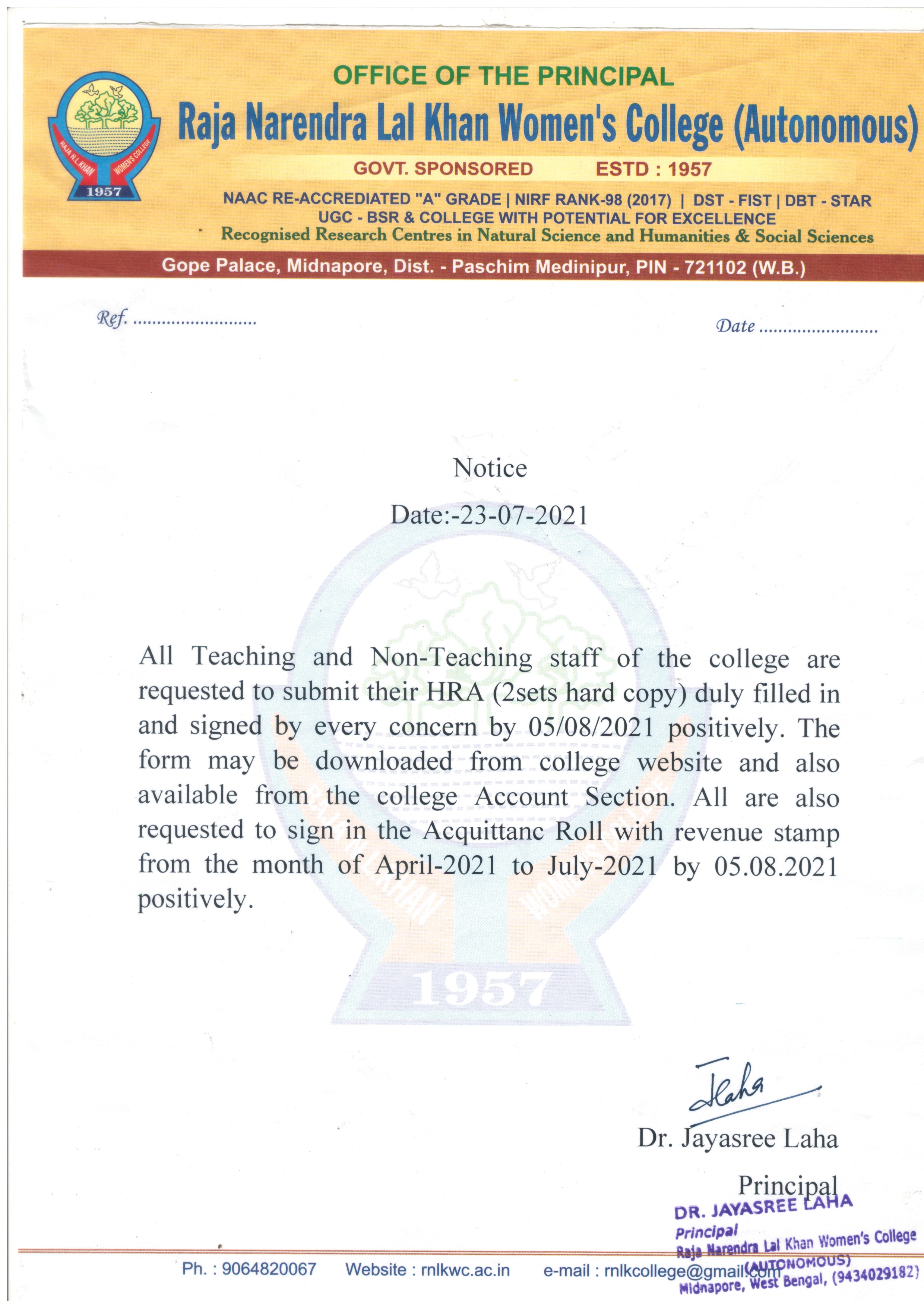 News : Notice for Teaching and Non-Teaching staff of the college .