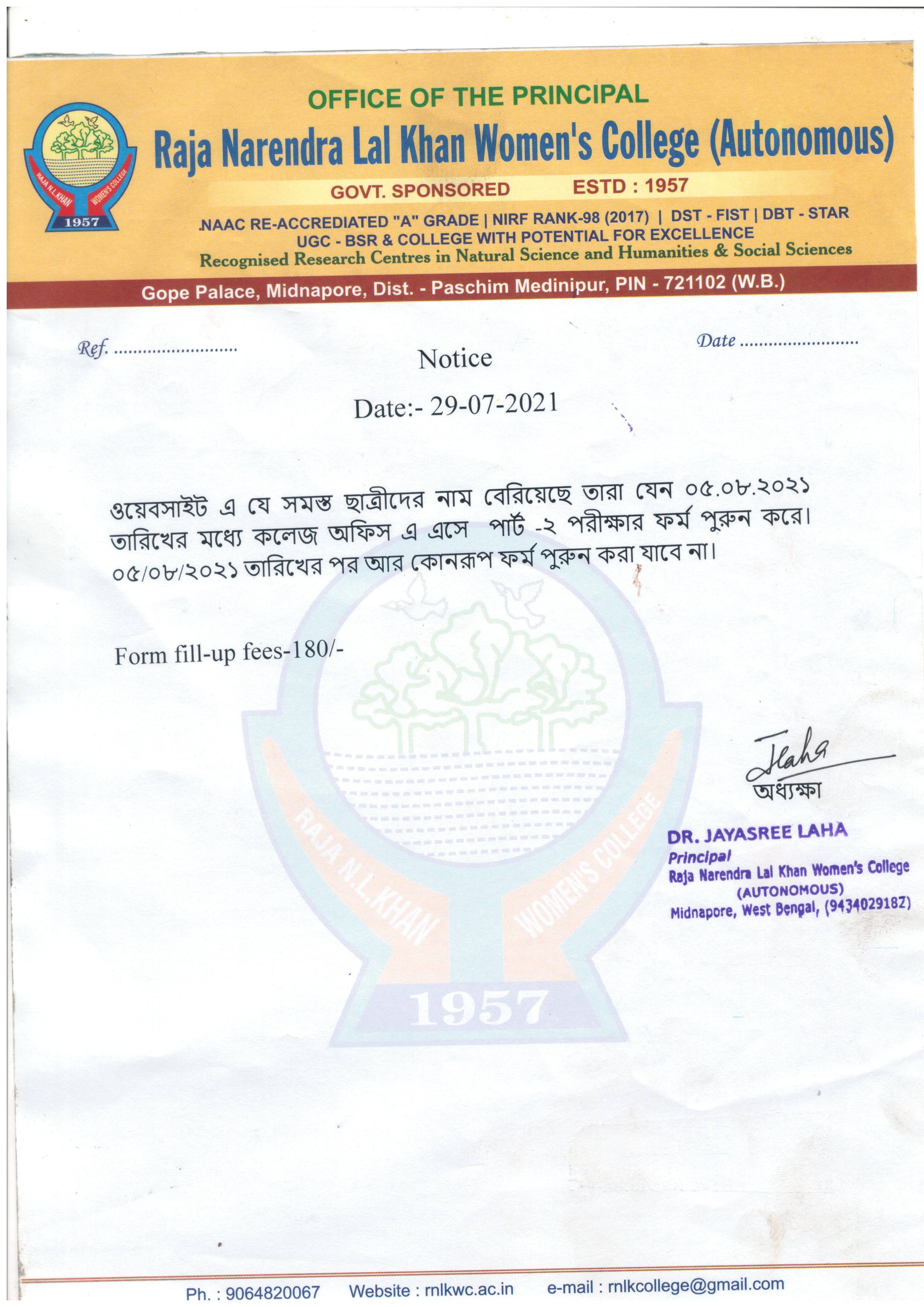News : Notice for PART-II Examination Form fill-up Under Vidyasagar University.